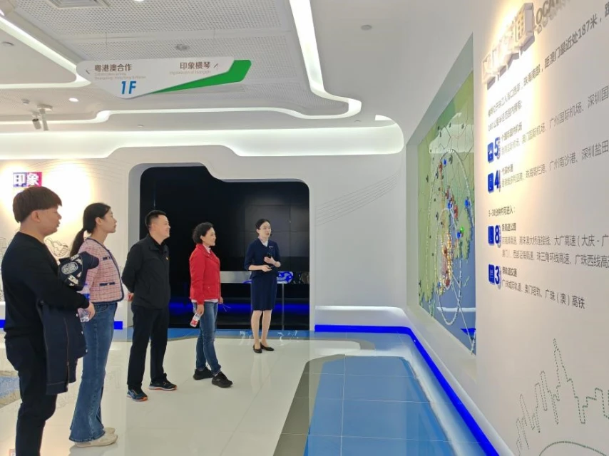 在珠海横琴粤澳深度合作区展示厅内,全体党员在讲解员的指引下,观看了横琴粤澳深度合作区宣传视频,围绕“横空出世,琴鸣天下”主题依次参观了“印象篇”“足迹篇”“规划篇”“建设篇”和“未来篇”五大展示单元。通过展厅现代化高科技技术展示,全体党员在身临其境的参观体验中,深入学习了横琴的区位交通、国家战略、粤港澳合作、发展历程、发展成果和城市规划等内容。