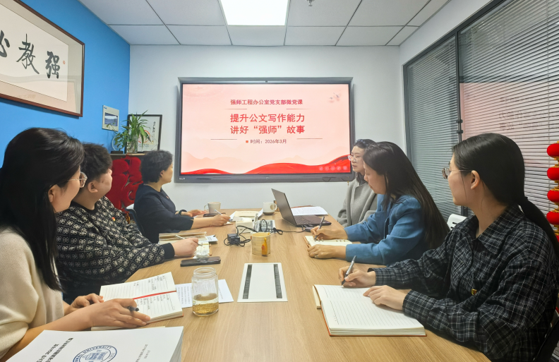 3月27日下午,强师工程办公室党支部以机关党委党建创新项目的立项和实施为契机,建强机关“小支部”、激活党建“大作为”,组织开展“微党课”学习。强师工程办公室党支部书记隋璐璐同志主持学习。